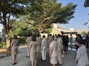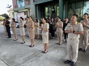 นางสาวศุภิฌาณัฐฏี สารผล ปลัดเทศบาลตำบลขามทะเลสอ พร้อมด้วยพนักงานจ้างและพนักงานจ้างเหมาบริการร่วมกิจกรรมเคารพธงชาติและสวดมนต์ไหว้พระ โดยมีวัตถุประสงค์เพื่อแสดงออกถึงการปกป้องสถาบันชาติศาสนาและพระมหากษัตริย์ 02 ก.พ. 69 แชร์