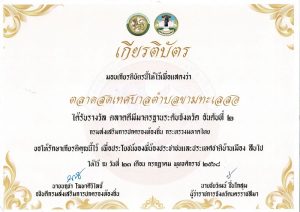 นายมาโนช มะลิขาว นายกเทศมนตรีตำบลขามทะเลสอ พร้อมด้วยปลัดเทศบาล พนักงานเทศบาล ได้รับมอบเกียรติบัตรองค์กรปกครองส่วนท้องถิ่นที่มีตลาดดีมีมาตรฐานระดับจังหวัด อันดับที่ 2 กับนายชัยวัฒน์ ชื่นโกสุม ผู้ว่าราชการจังหวัดนครราชสีมา เพื่อพัฒนามาตรฐานการดำเนินงานของตลาดให้เป็นแหล่งท่องเที่ยวชุมชน และดึงดูดนักท่องเที่ยวเข้ามาใช้บริการ เป็นแหล่งสร้างงาน สร้างอาชีพให้กับประชาชนท้องถิ่น เป็นการดูแลความเป็นระเบียบเรียบร้อยและการรักษาความสะอาดของตลาดไม่ให้ส่งผลกระทบต่อประชาชนและสิ่งแวดล้อม